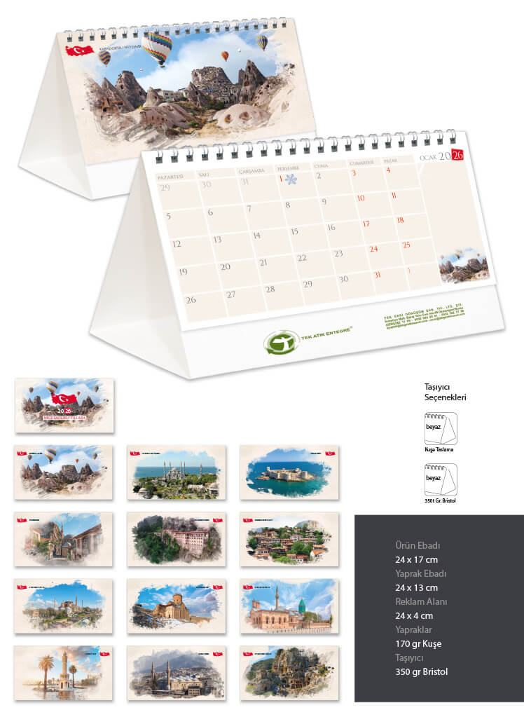 Dayanıklı karton taşıyıcısı ile uzun ömürlü bir kullanım sunan Piramit Takvim – TK41, 4 renkli selefon baskısıyla ofisinize veya evinize şıklık katacaktır. Güçlü yapısı sayesinde deformasyona uğramaz ve her daim sağlam kalır. Hem göz alıcı tasarımı hem de işlevselliği ile kullanıcılarının beklentilerini karşılar.