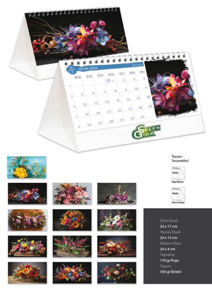 Geniş yazma alanları sayesinde not almanızı ve önemli tarihleri kaydetmenizi kolaylaştırır. Böylece planlarınızı daha etkili bir şekilde organize edebilirsiniz. Ayrıca takvim üzerindeki baskı alanı, marka tanıtımınıza katkıda bulunur. Kendi logonuzu ve mesajınızı ekleyerek potansiyel müşterilerle iletişimi artırabilirsiniz.